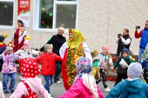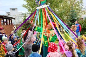 Скоморох, русская Матрешка, Медведь, русская народная музыка и яркие костюмы, веселые игры и хороводы создали атмосферу русского народного гуляния с его обычаями и традициями.