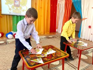 Просмотр мультфильмов из серии «Разговоры о важном» : «Символы России», «День народного единства», «О России» , позволил дошколятам в доступной форме познакомиться с историей возникновения праздника,подвигами наших предков во имя независимости Родины. Дошкольники узнали, как велика, красива и богата ресурсами наша страна.